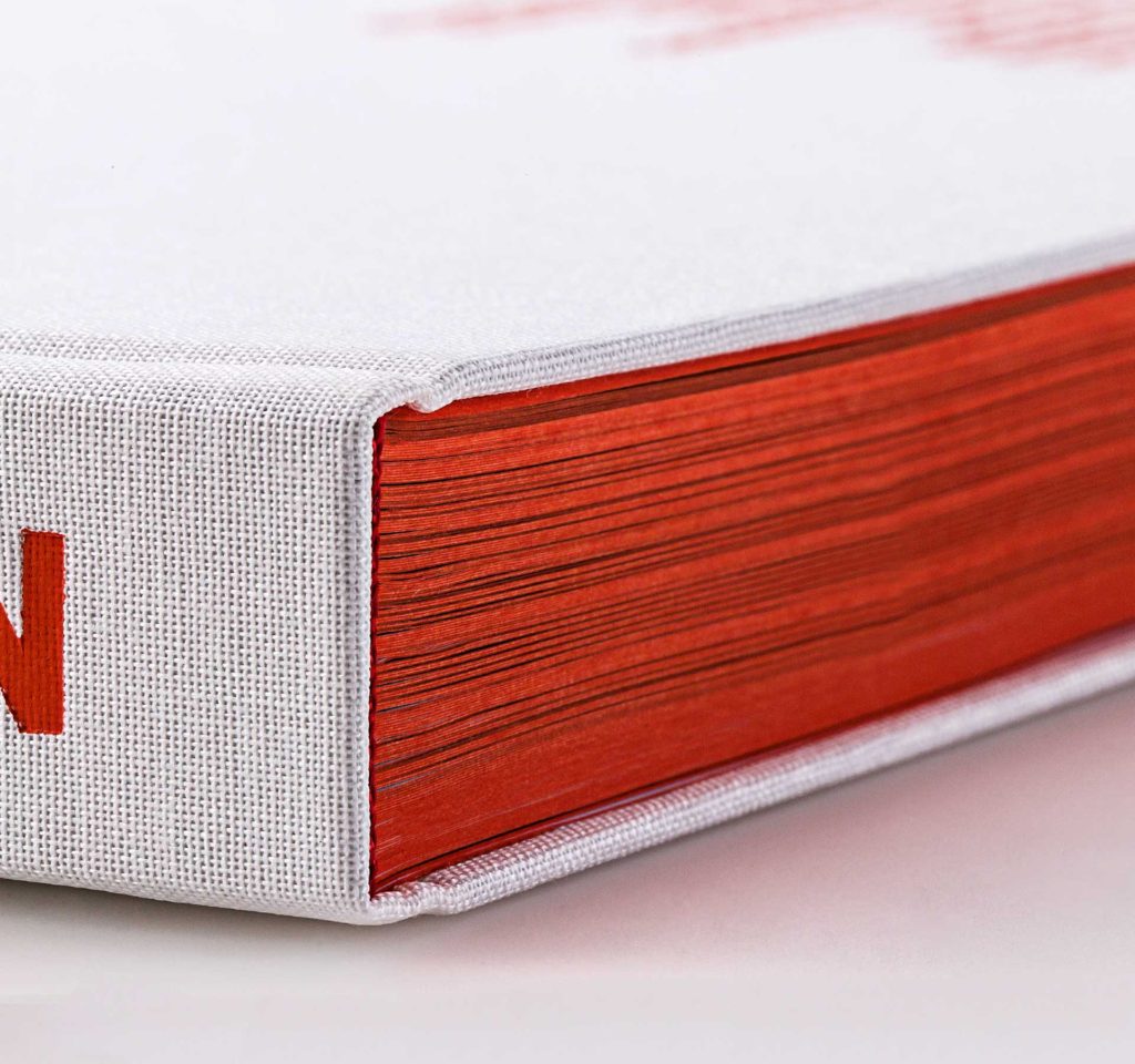 Der Farb- oder Folienschnitt ermöglicht Ihnen als Gestalter alle drei sichtbaren Papierkanten des Buchblockes in die Gestaltung mit einzubeziehen.