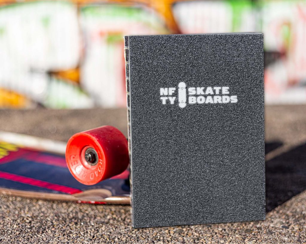 Griptape im Siebdruck weiß bedruckt (Buchdeckel U1)